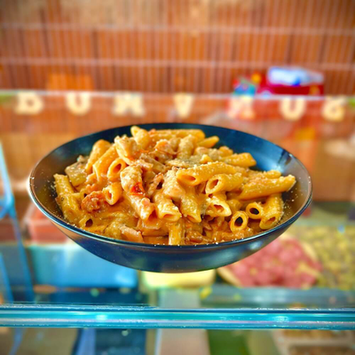Bacon, onion, mushroom & garlic cooked in creamy tomato sauce