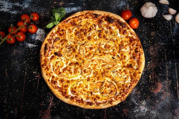 Pizza Sauce, Mozzarella, Chicken, Pumpkin, Walnuts & Garlic Sauce