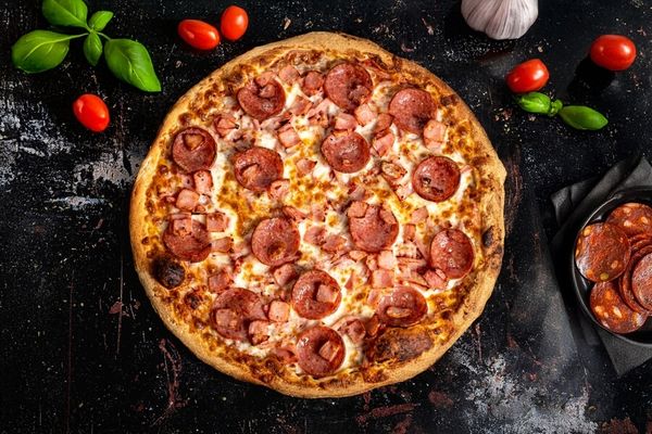Pizza Sauce, Mozzarella, Ham, Bacon & Pepperoni