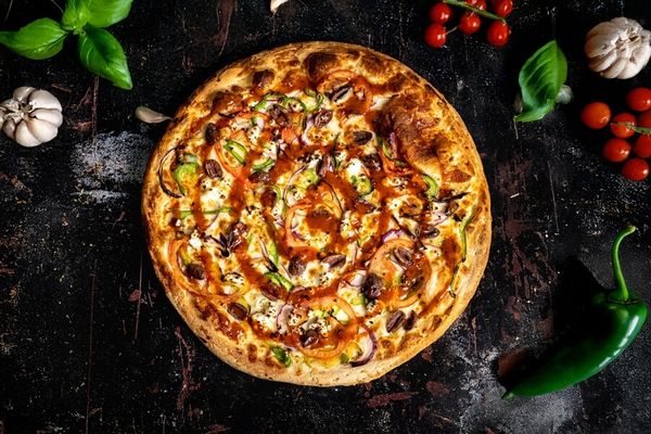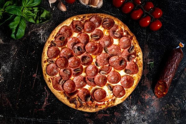 Pizza Sauce, Mozzarella, Pepperoni, Tomato & Olives