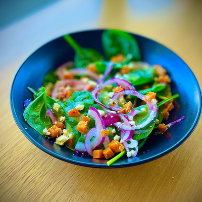 Spinach, Onion, Pumpkin & Feta with a Vinaigrette Dressing