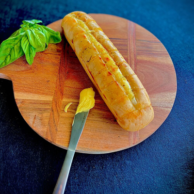 Pizza Sauce, Mozzarella, Italian Sausage, Olives, Capsicum, Artichokes & Basil Mayo Swirl