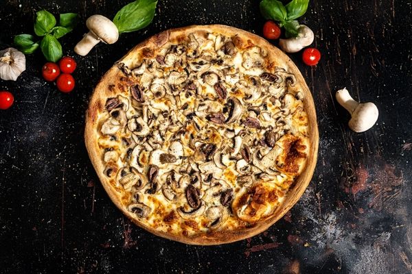 Crème Sauce, Mozzarella, Mushroom, Olives & Herbs