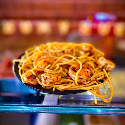 A seafood mix of marinated prawns, mussels, fish & calamari rings cooked in rich tomato sauce