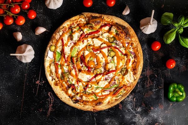 Pizza Sauce, Mozzarella, Onion, Mixed Capsicum, Jalapeños & Chicken Topped with Peri Peri Sauce