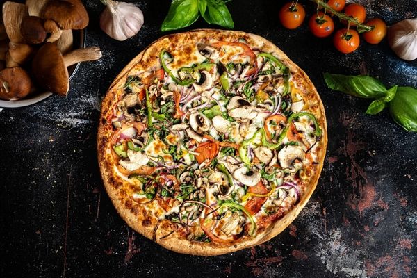 Pizza Sauce, Mozzarella, Spinach, Onion, Mushroom, Capsicum & Tomato