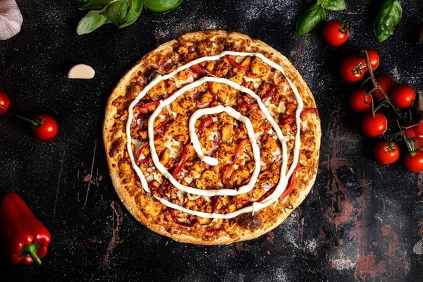 Pizza Sauce, Mozzarella, Tandoori Chicken, Onion, Red Capsicum & Chilli Flakes topped with mayonnaise